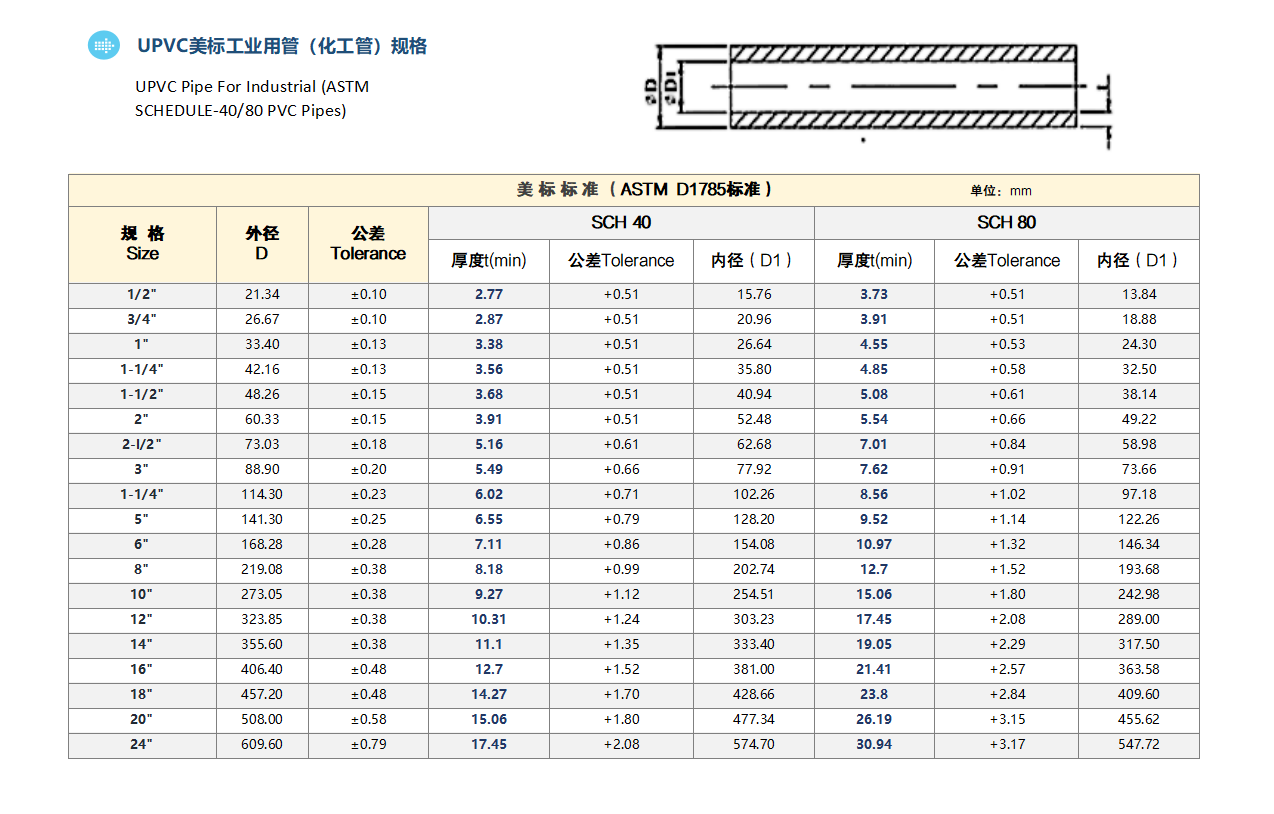 美標(biāo)UPVC 化工管產(chǎn)品用途(ASTM SCH 40/80 )